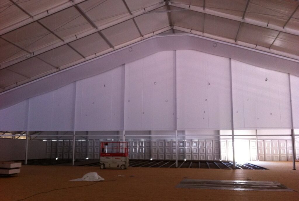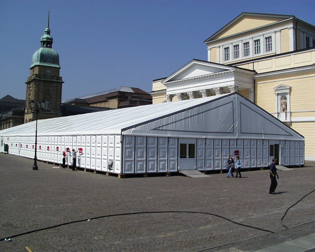 Für die funktionale und optische Gestaltung Ihrer Zeltanlage stehen Ihnen viele Möglichkeiten offen. Je nach Anlass oder Nutzung Ihrer temporären Zeltanlage können Sie sich die Module zusammenstellen. So können Sie z.B. hinsichtlich der Ausstattung Ihrer Zeltanlage zwischen vielen unterschiedlichen Arten der Seitenwandverkleidungen und Türen wählen. Benötigen Sie ein professionelles Fußbodensystem? Muss die Anlage ballastiert werden, weil eine Verankerung im Untergrund nicht möglich ist? Auch das Equipment für die Gestaltung des Innenraumes bietet Ihnen zahlreiche funktionale und nützliche Optionen.